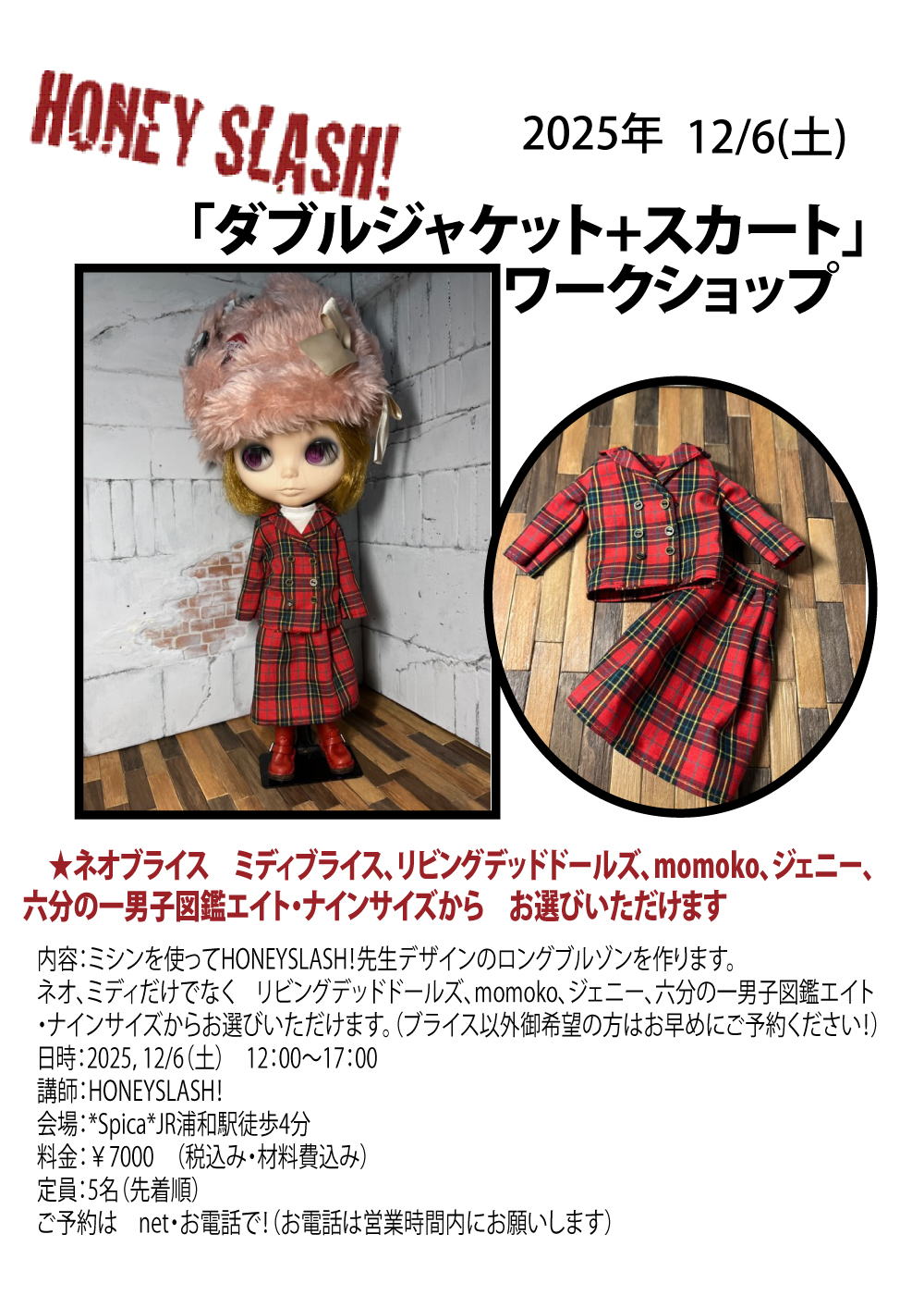 | 2025年12/6(土)「ダブルジャケット+スカート」ワークショップ ご予約はこちら 満席 |