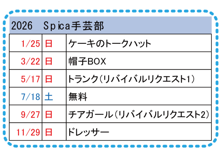 2026年11/29(日) Spica手芸部 第70回 「ドレッサー」