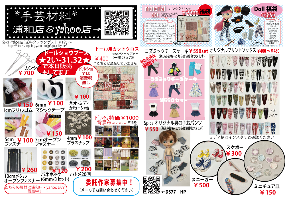 https://store.shopping.yahoo.co.jp/spica-blythe/yahoo店でも販売中!ドルショは消費税分お安くなってます。お値段はこちらでご確認ください↓