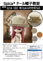 2026年2/14(日)「Spica*ドール帽子教室 布フェルトのウサギハット 」