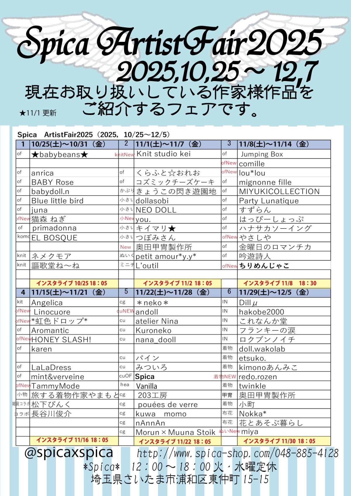 第2週(11/1(土)~11/7(金) *ArtistFair期間中こちらの作家様作品10%off) **新作通販はインスタライブ後に開始