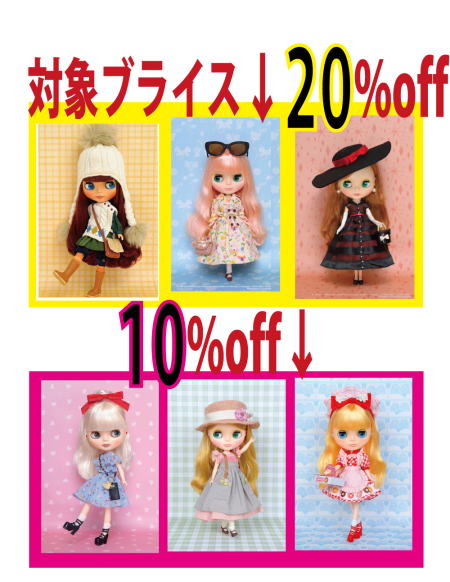 20%off、10%offのブライスもご用意しました。ハニーベアもセンチメンタルサー
