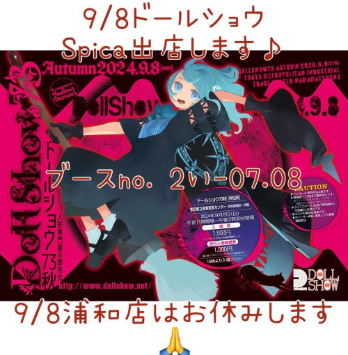 □お知らせ3・・・【9/8ドールショウ Spica出店します】