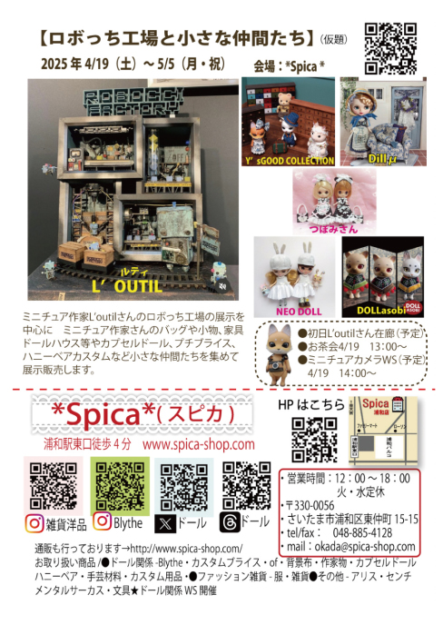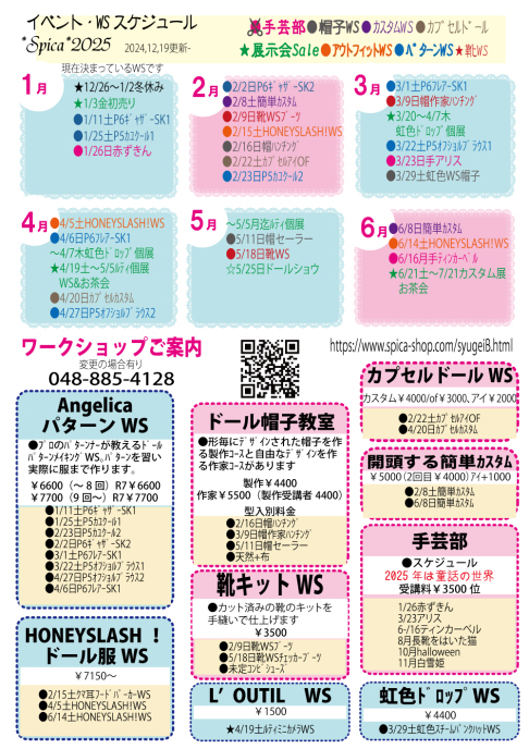 □お知らせ3・・SpicaArtistFairは12/25迄
