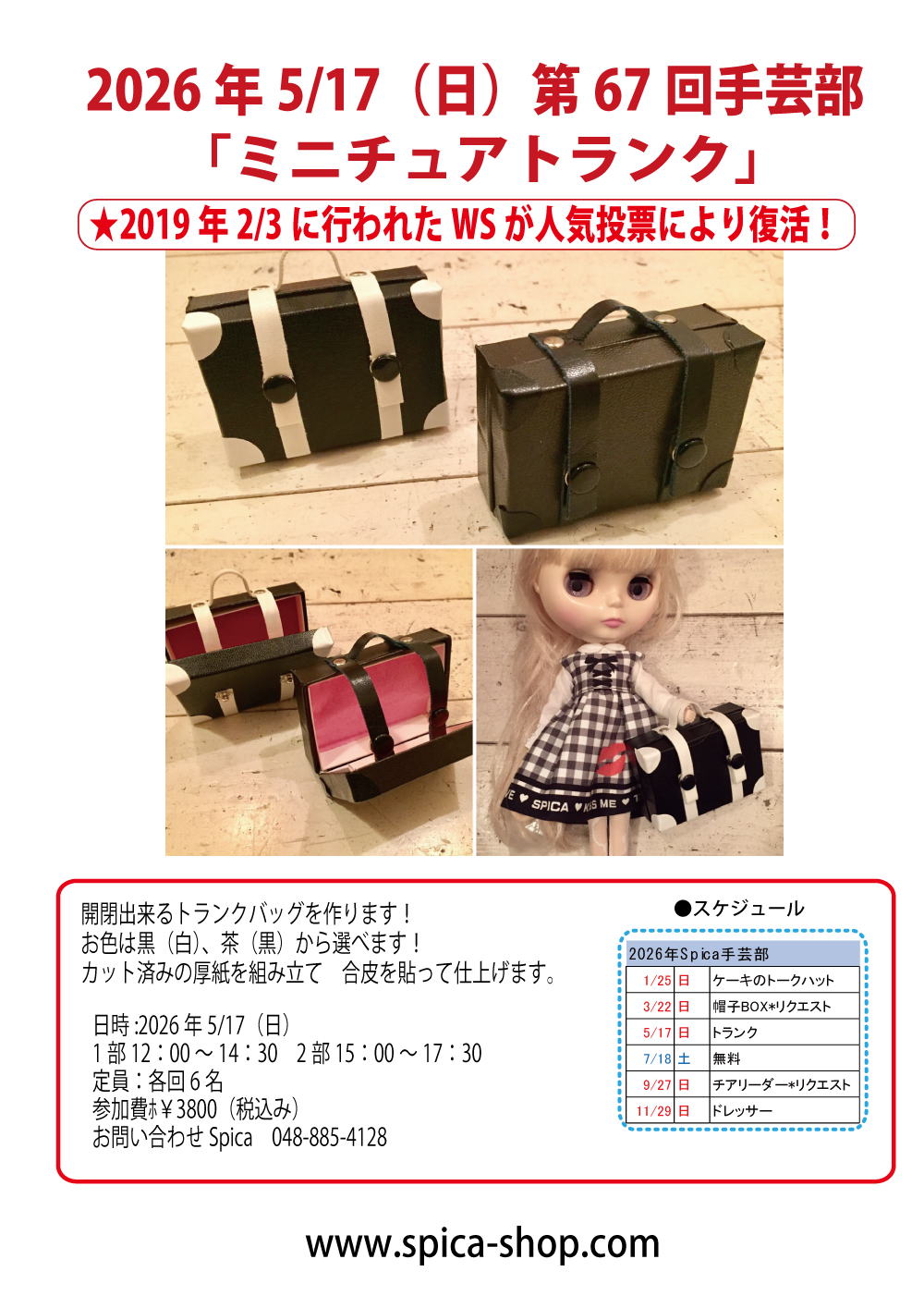 2026年5/17(日) Spica手芸部「第67回 「ミニチュアトランク」